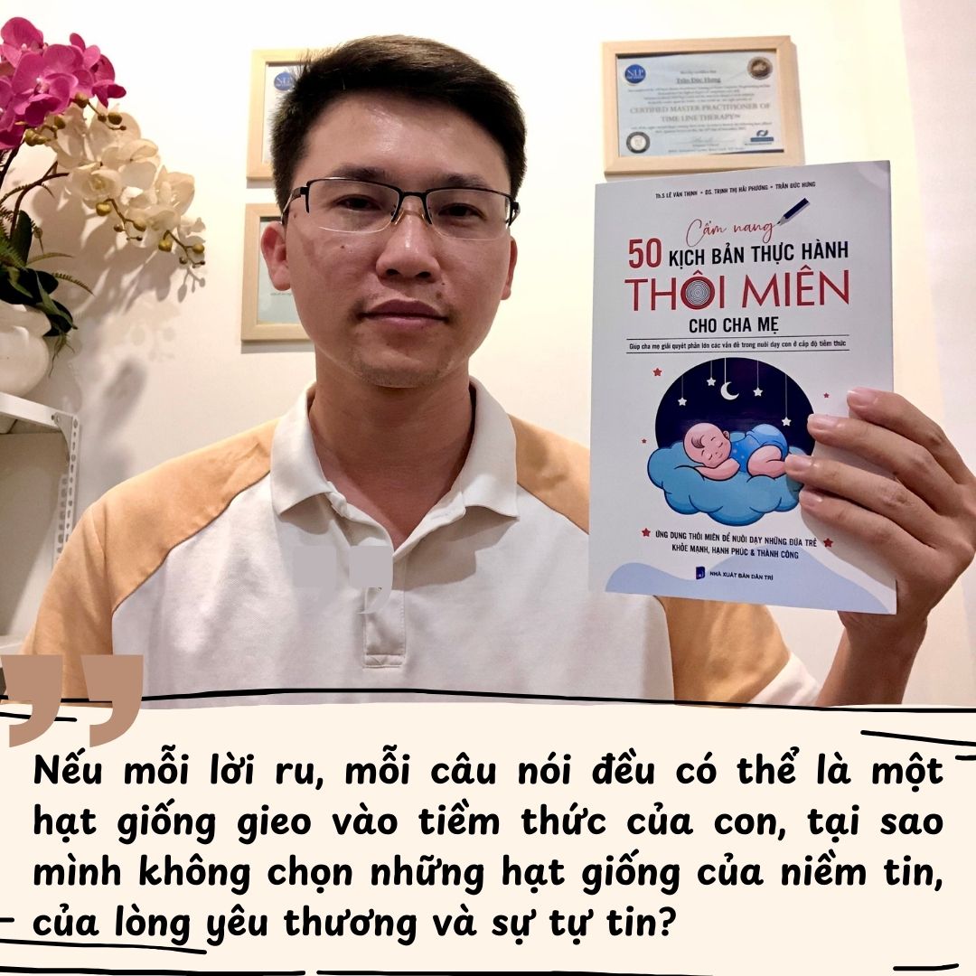 Đó cũng chính là khởi đầu của hành trình nghiên cứu và biên soạn ra 50 KỊCH BẢN THÔI MIÊN CHO TRẺ EM. Cuốn sách này là sự kết hợp giữa thôi miên, tâm lý học và khoa học về sức khỏe, giúp cha mẹ có thể sử dụng mỗi ngày để tác động tích cực đến con.