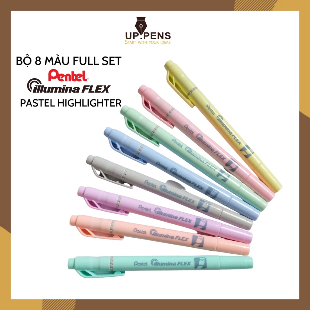 Giới thiệu Bộ 8 bút dạ quang Pentel Illumina Flex Twin Tip Highlighter SLW11P - Bold/Five - Pastel Colors