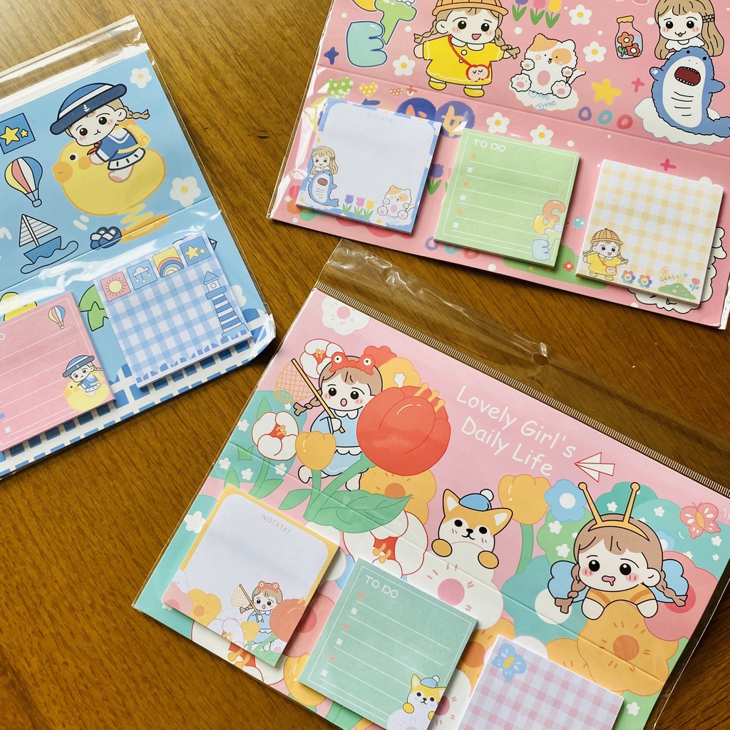 Văn Phòng Phẩm > Sổ & Giấy Các Loại > Giấy Ghi Chú || [Ảnh thật] Tệp set 3 xấp Giấy note ghi chú cô gái cute đáng yêu nhiều mầu đủ mẫu