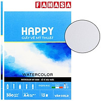 Sổ Vẽ Mỹ Thuật Gáy Keo Màu Nước A4 - Happy Water Color - Vân Cold - 300gsm (12 Tờ)