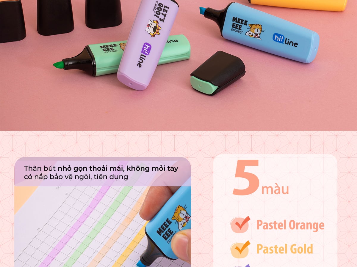 Giới thiệu Bút dạ quang màu Pastel Hi! Line Thiên Long HL-023 - Đầu bút siêu mềm, lướt giấy nhẹ êm