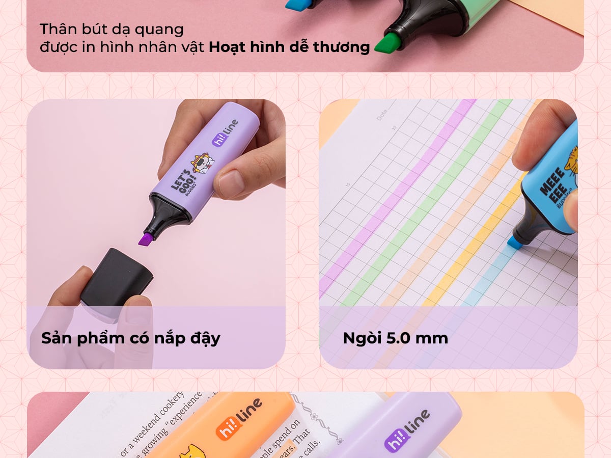 Bút dạ quang màu Pastel Hi! Line Thiên Long HL-023 - Đầu bút siêu mềm, lướt giấy nhẹ êm