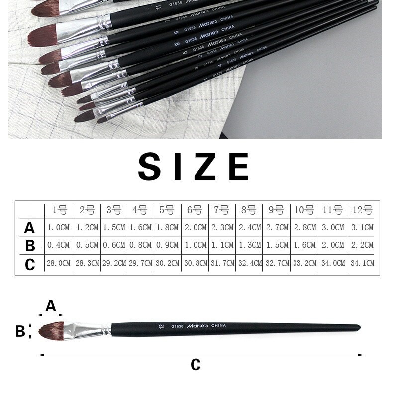 Văn Phòng Phẩm > Hoạ Cụ > Cọ Vẽ || CỌ VẼ ĐẦU OVAL MARIE'S G1636 (VẼ MÀU ACRYLIC, SƠN DẦU, GOUACHE)
