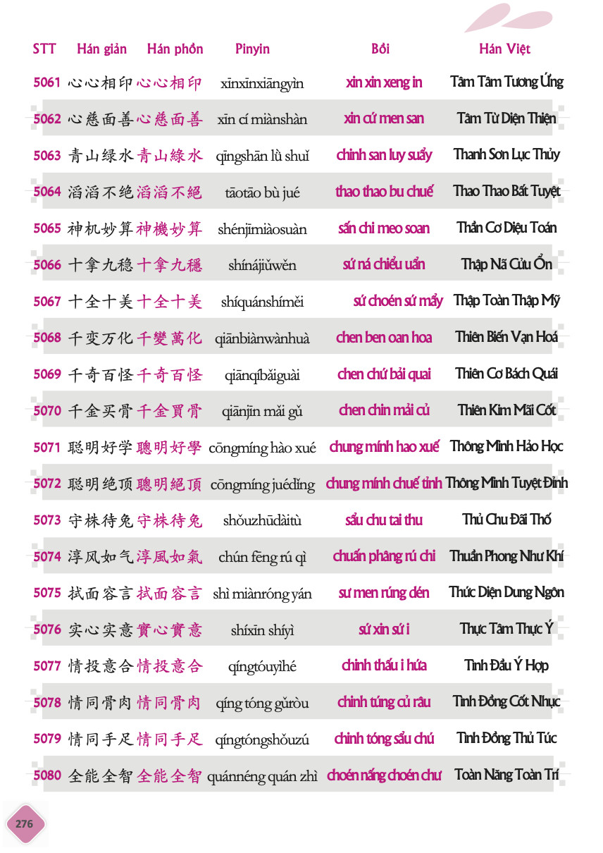 - Phần 01: Sách bản cứng, mỗi chữ trong 5099 chữ đều có: