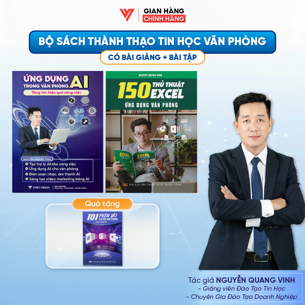 Giới thiệu Combo 2 Sách Ứng Dụng AI Và 150 Thủ Thuật Excel Ứng Dụng Văn Phòng Kèm Video Bài Giảng