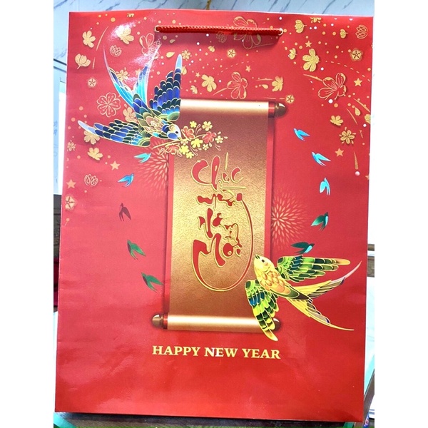 Túi giấy đựng quà tết, túi giấy chúc mừng năm mới màu đỏ bóng, quai vải dù chắc chắn combo 20 chiếc. Để chọn cùng màu hay khác màu vui lòng nhắn tin shop