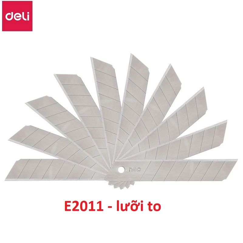 Giới thiệu Dao rọc giấy Deli 2045 / 2057 đệm cao su mềm, loại 8 lưỡi tách rời màu bạc - Lưỡi thay 2011