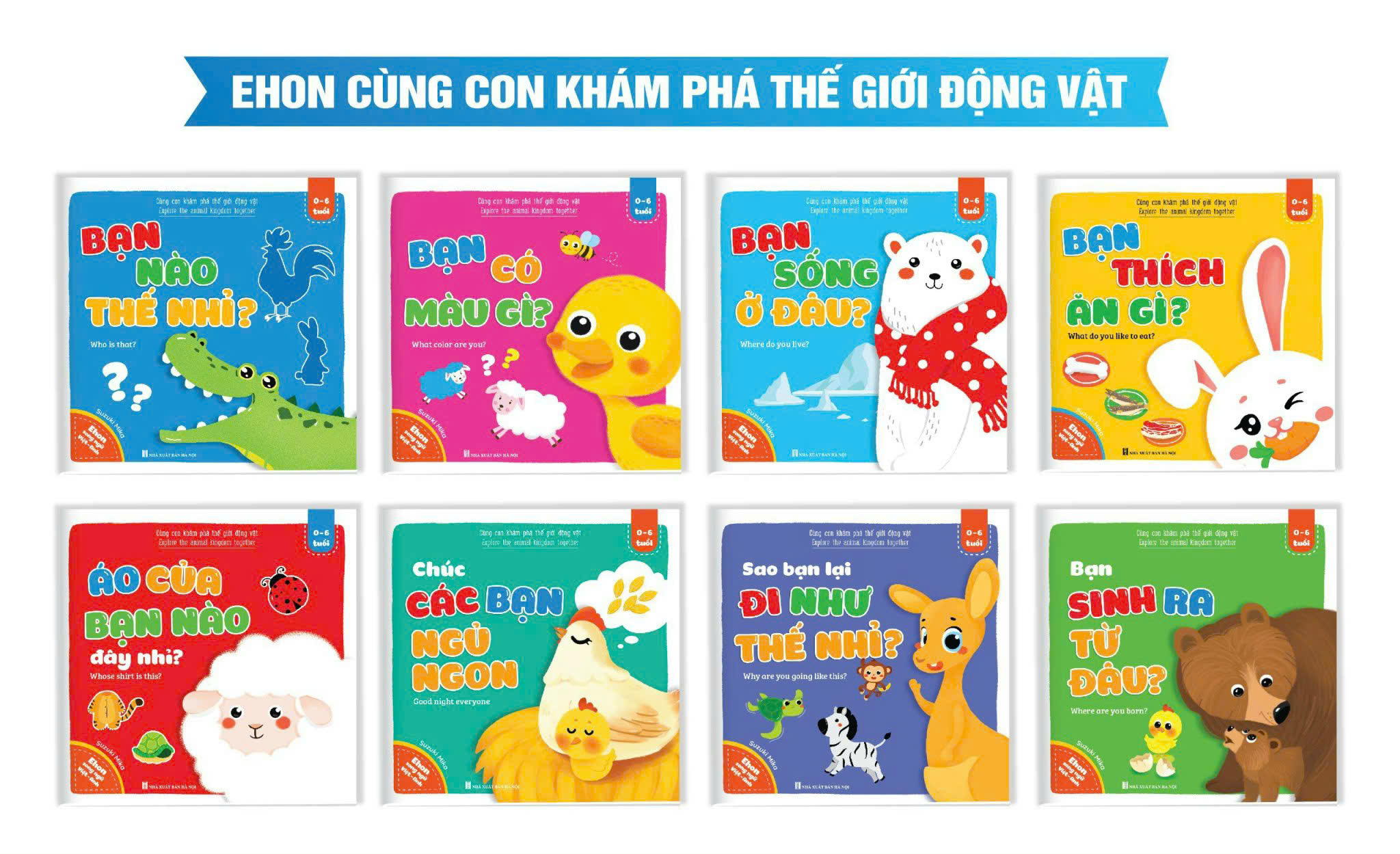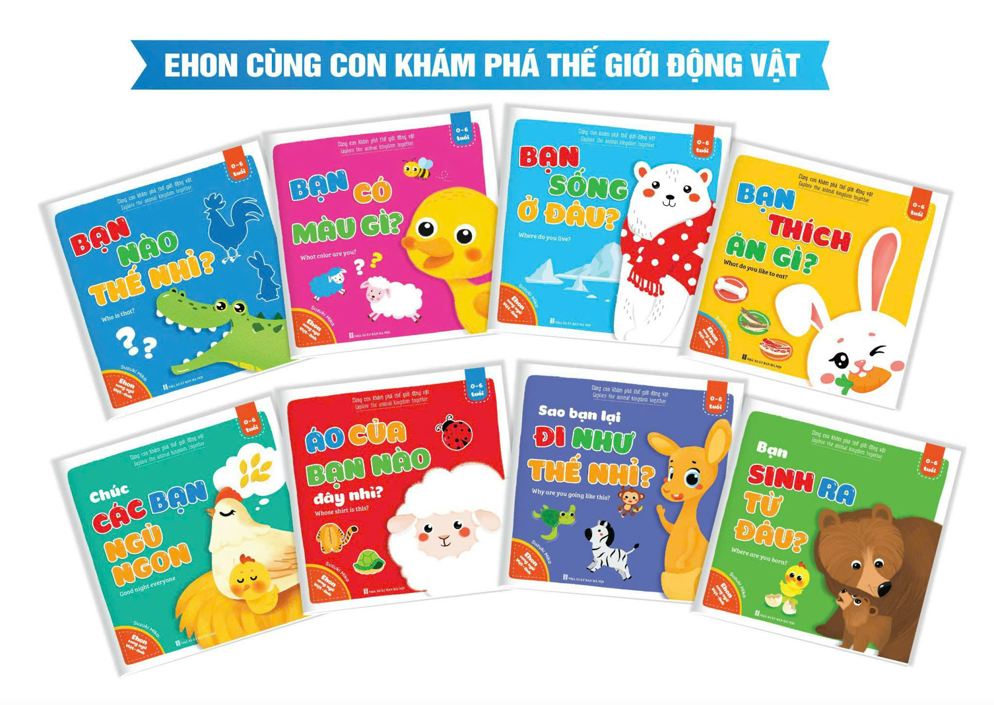 Ehon Động Vật - Song Ngữ Dành Cho Bé 0-6 Tuổi GIỚI THIỆU SẢN PHẨM:Bộ Ehon Cùng con khám phá thế giới động vật (song ngữ Việt - Anh)Trọn bộ gồm 8 quyển:- Bạn nào thế nhỉ?- Bạn có màu gì?- Bạn số...