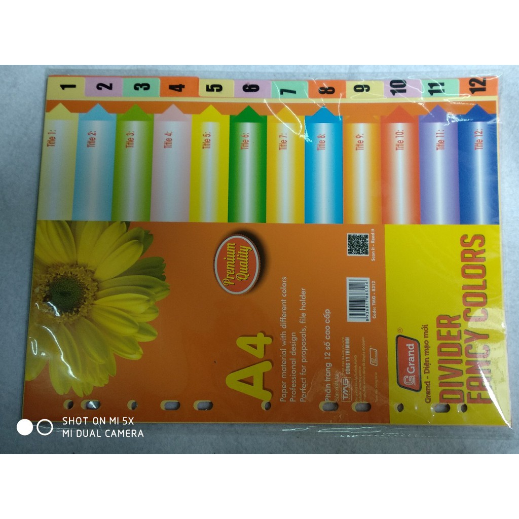 Văn Phòng Phẩm > Thiết Bị Trường Học > Dụng Cụ Lưu Trữ Giấy Tờ || File chia tài liệu 12 số bằng giấy Pgrand Divider Fancy Color