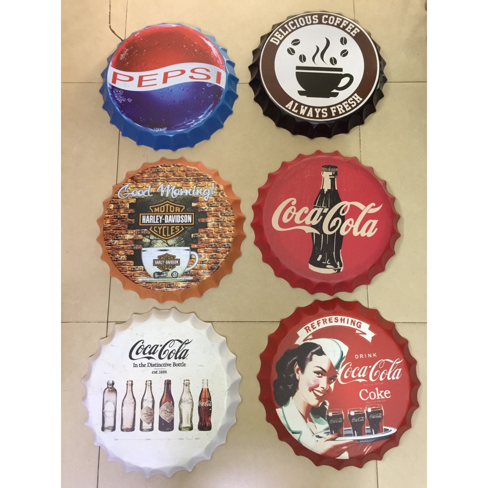 Nắp chai decor 35cm đa dạng các hình ảnh, phù hợp với các nhu cầu trang trí: nhà hàng, beer club, quán nhậu, quán cafe, tiệm trà sữa, tiệm tóc barber, tiệm xăm tattoo,…