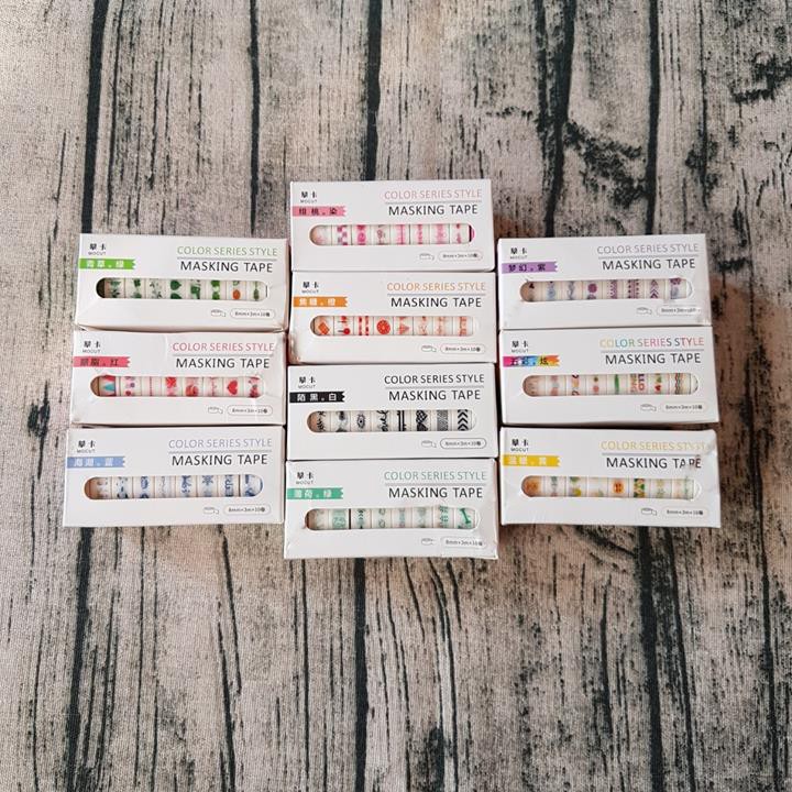 Văn Phòng Phẩm > Thiết Bị Trường Học > Dây & Băng Keo Dán || HCM - Hộp 10 cuộn băng keo giấy họa tiết trang trí đồ handmade thêm xinh và sáng tạo