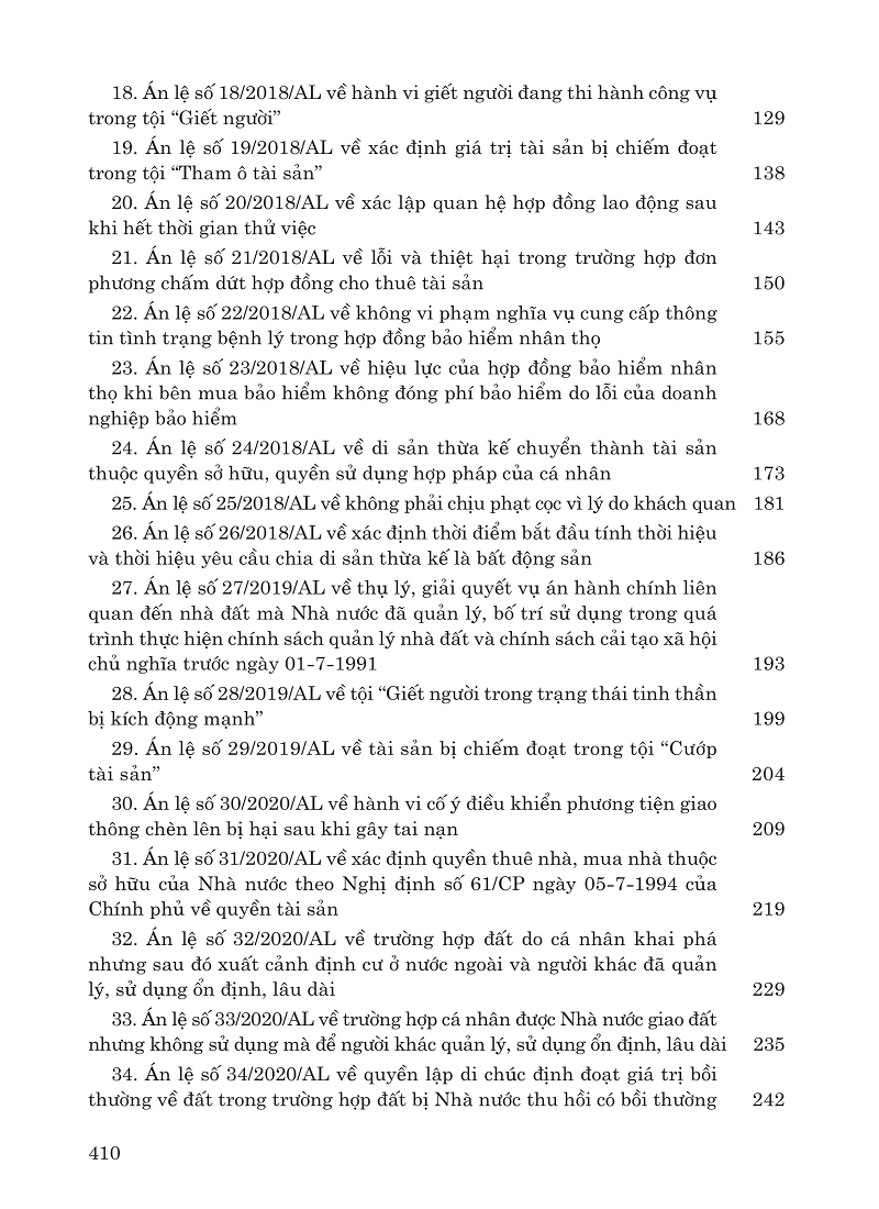 Để thuận tiện cho việc nghiên cứu, tìm hiểu, vận dụng án lệ trong quá trình thực hiện nhiệm vụ xét xử của Tòa án; giúp các cơ quan, tổ chức, cá nhân quan tâm tới hoạt động của Tòa án có thể tiếp cận với các án lệ đã ban hành; tạo nguồn tham khảo cho các hoạt động giảng dạy, nghiên cứu khoa học của các cơ quan, tổ chức, cá nhân, Nhà xuất bản Lao Động xuất bản và phát hành cuốn :