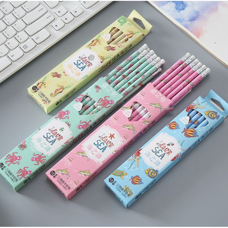 Văn Phòng Phẩm > Bút Các Loại > Bút Chì || Hộp 12 bút chì HB I LOVE SEA H61