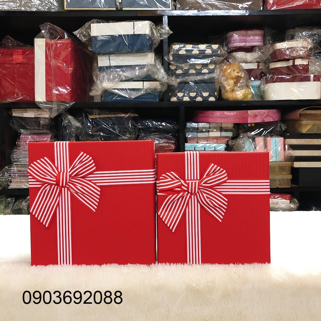 Hộp quà hình vuông - hộp đựng quà cứng cáp nơ sọc siêu đẹp