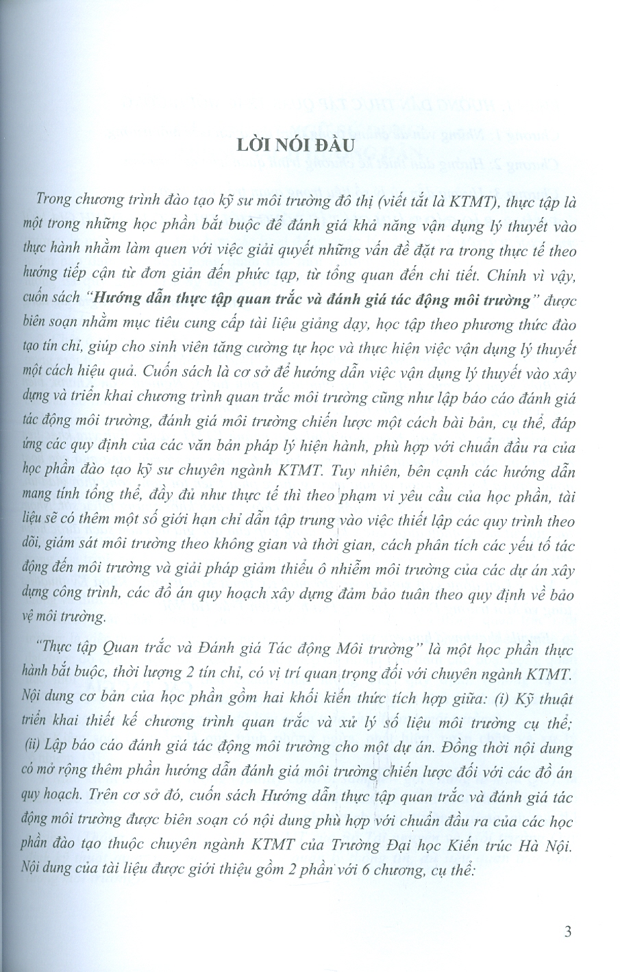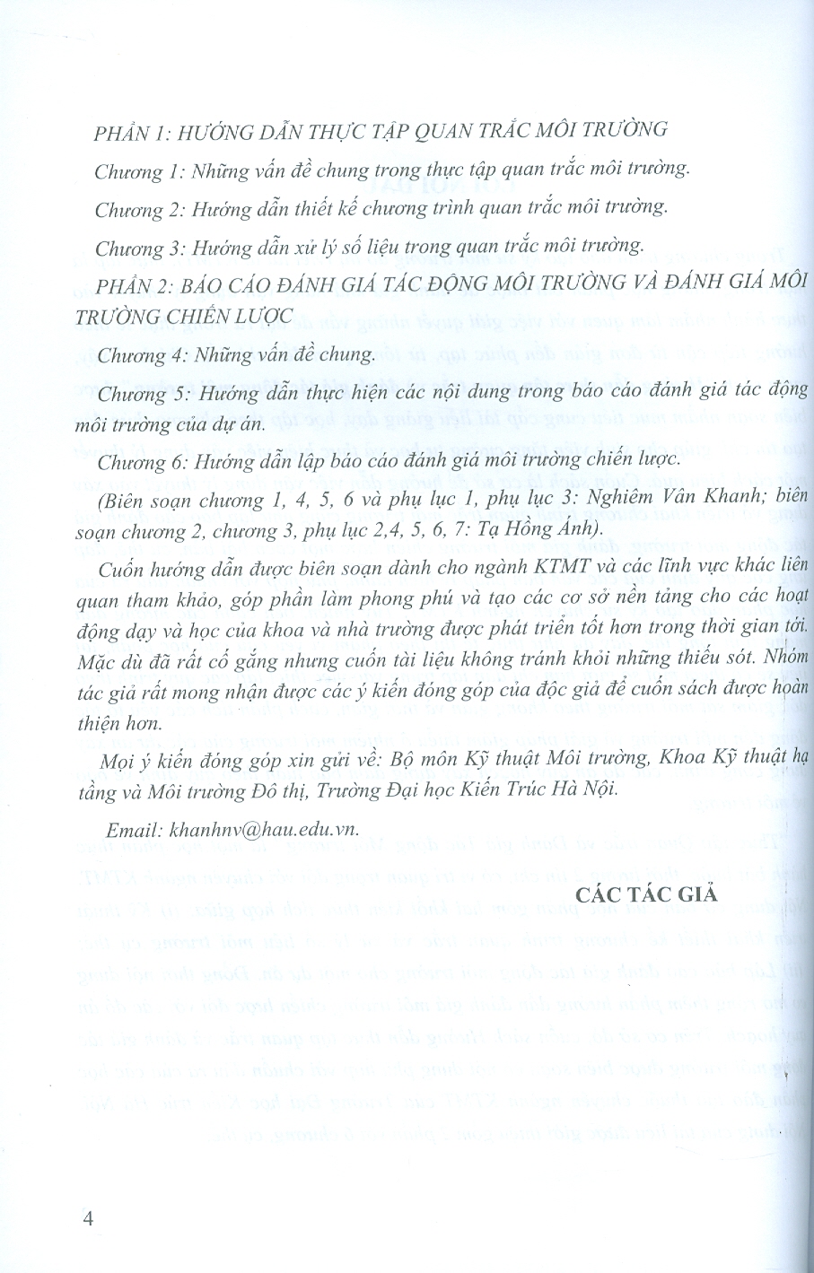 Giới thiệu Hướng Dẫn Thực Tập Quan Trắc Và Đánh Giá Tác Động Môi Trường - Trường Đại học Kiến trúc Hà Nội. PGS. TS. Nghiêm Vân Khanh chủ biên, ThS. Tạ Hồng Ánh