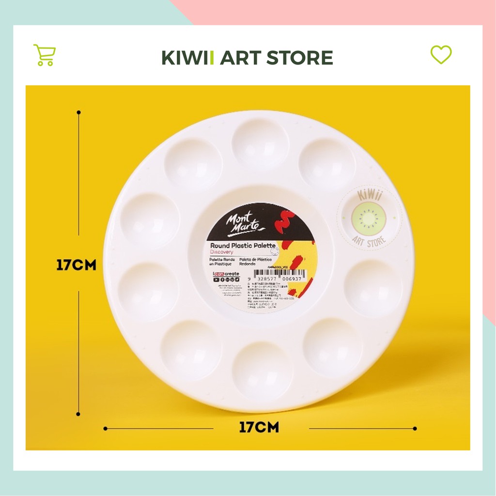 - Palette nhựa tròn gồm 10 rãnh pha màu, đường kính 17cm, ở giữa có ranh tròn to ở trung tâm.