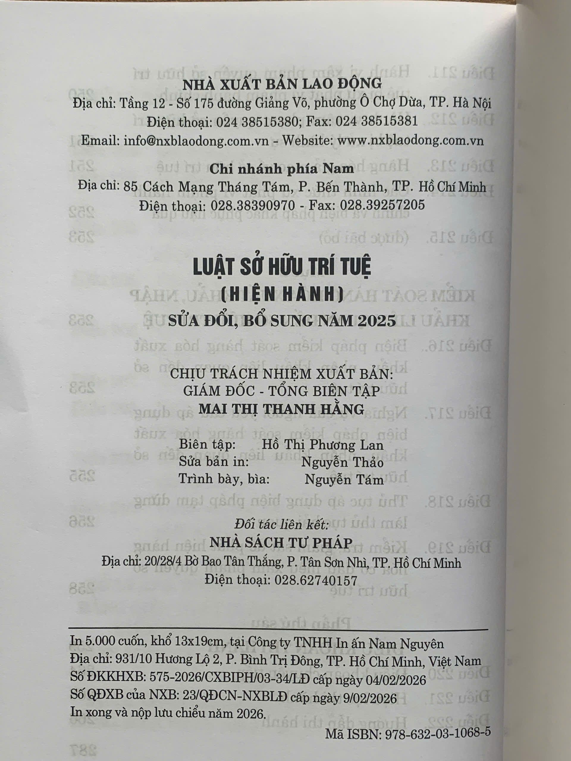 Cuốn Luật Sở hữu trí tuệ (hiện hành) sửa đổi, bổ sung năm 2025 giúp bạn đọc cập nhật đầy đủ, chính xác các quy định pháp luật mới nhất về quyền tác giả, quyền liên quan, quyền sở hữu công nghiệp và quyền đối với giống cây trồng; là tài liệu cần thiết cho sinh viên, giảng viên, luật sư, doanh nghiệp và các tổ chức, cá nhân quan tâm đến lĩnh vực sở hữu trí tuệ.