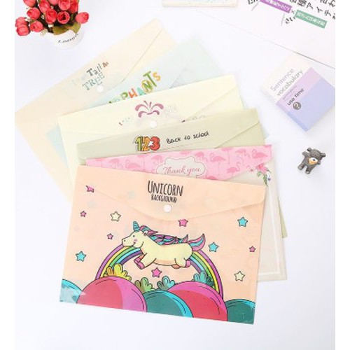 Túi đựng tài liệu A4 đính cúc có nắp gập hoạt tiết hoạt hình BMBooks