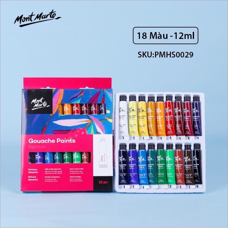 Giới thiệu Bộ Màu Gouache Mont Marte 12/18/24 Màu x 12ml - Gouache Paints Signature - PMHS0028/PMHS0029/PMHS0030