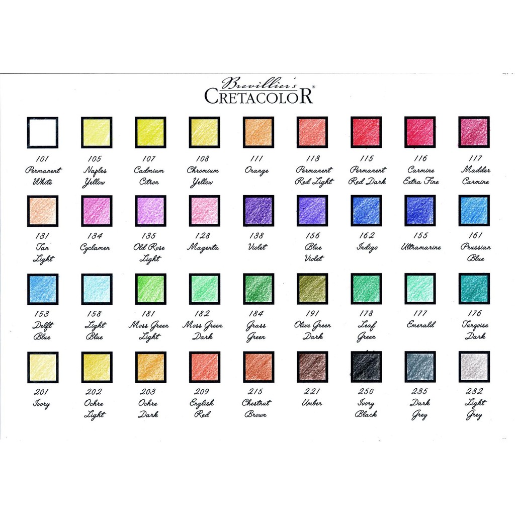 Chì màu chất lượng họa sĩ của hãng CretaColor này có hình lục giác làm cho bút chì đặt trên bàn không dễ bị lăn đi và đầu chì mềm, có nhiều màu sắc để tạo ra các hiệu ứng đậm nhạt, sống động. Chúng rất lý tưởng để làm việc trong các kỹ thuật khác nhau, ví dụ như tạo khối, blend màu và kết hợp với các màu khác, v.v. Được cung cấp với 36 màu đơn hoặc theo set.