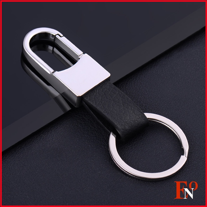 Mẫu móc khóa kết hợp hài hòa gọn gàng giữa móc kim loại kèm dây da PU và 1 khoen móc khóa.