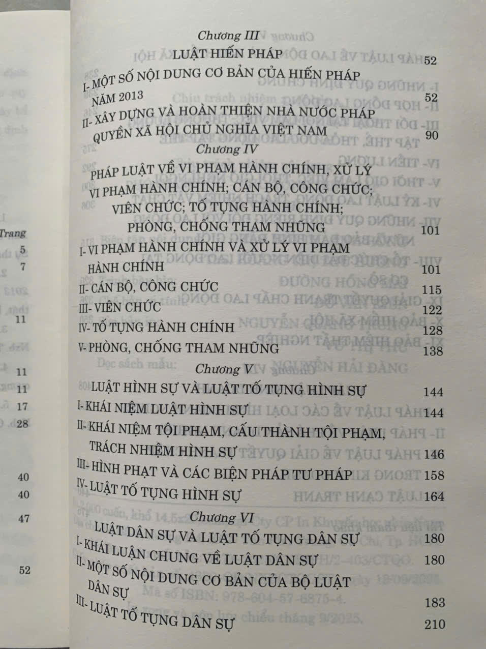 Trong lần xuất bản này, tác giả bổ nội dung của Chương Những vấn đề cơ bản về Nhà nước và Pháp luật; sửa đổi và bổ sung nội dung các chương theo Hiến pháp năm 2013 (sửa đổi, bổ sung năm 2025), Luật Ban hành văn bản quy phạm pháp luật năm 2025, Luật Tổ chức chính quyền địa phương năm 2025, Luật Cán bộ, công chức năm 2025, Luật Việc làm năm 2025, và các luật được sửa đổi, bổ sung năm 2025: