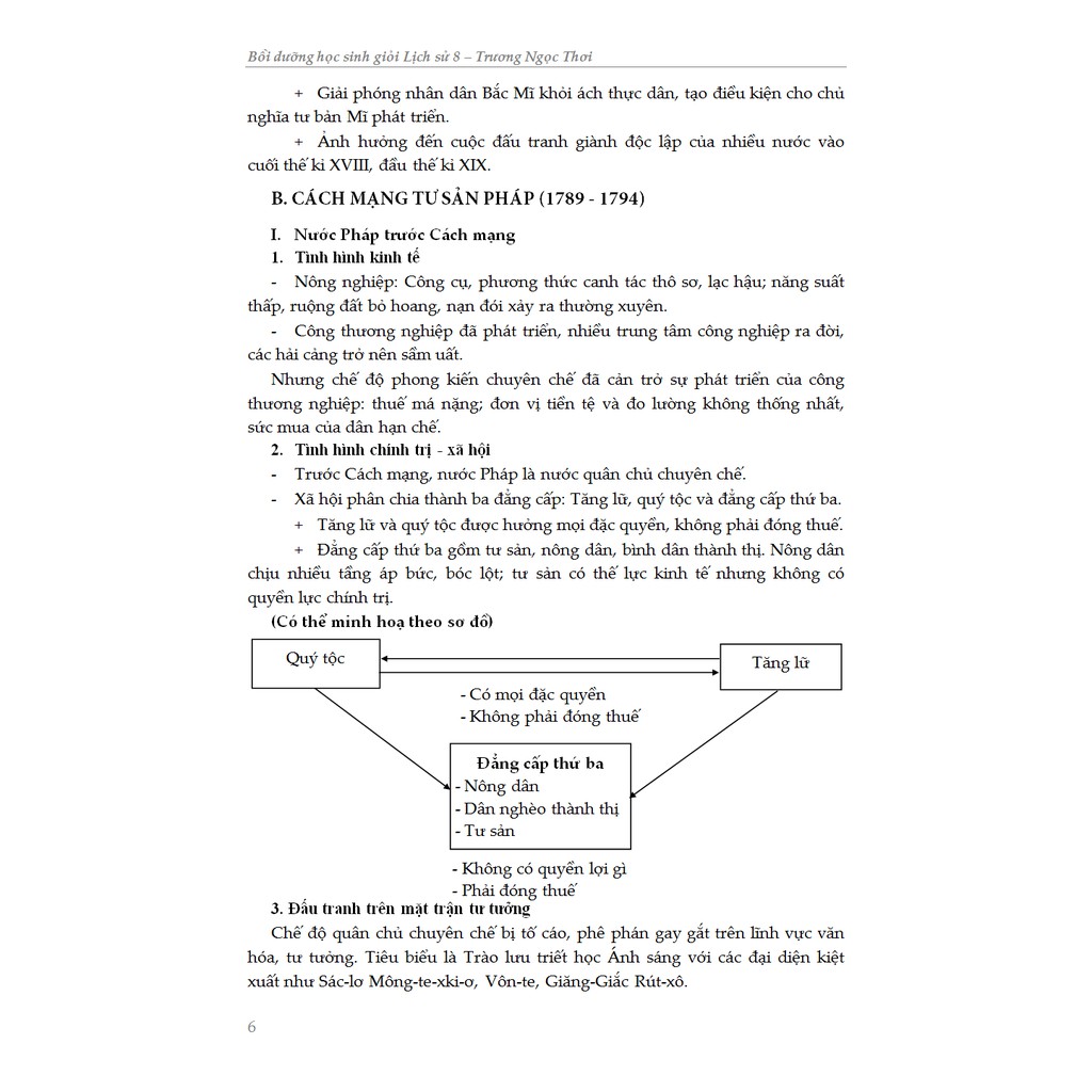 Để đưa ra các giải pháp và nâng cao chất lượng bồi dưỡng học sinh giỏi thì thạc sĩ Trương Ngọc Thới đã biên soạn cuốn sách Bồi Dưỡng Học Sinh Giỏi Lịch Sử 8 với nội dung được chia làm 3 mốc lịch sử là: