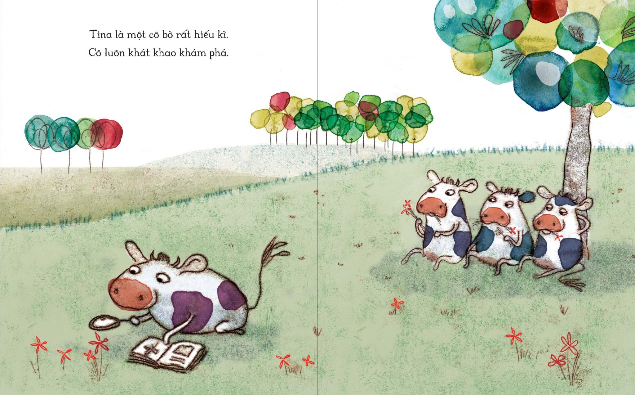- Không giống như những con bò khác, Tina thích tìm tòi, thích khám phá, thích mộng mơ.