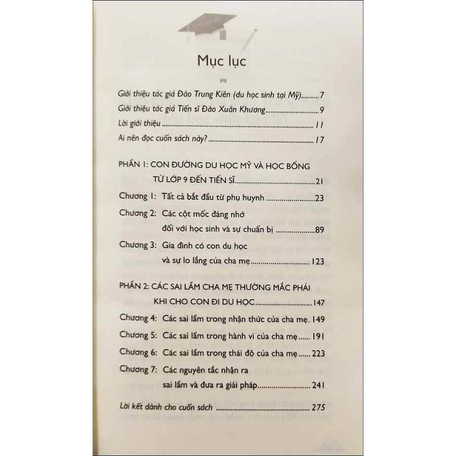 - Cuốn sách “Con đường du học Mỹ và học bổng từ lớp 9 đến Tiến sĩ” là lời chia sẻ và tâm sự của Đào Trung Kiên – một người trẻ có kinh nghiệm du học ở Mỹ từ năm lớp 9 – Với các bạn học sinh có nhu cầu đi du học mà chưa biết bắt đầu từ đâu. Kiên cũng chia sẻ những điều cần biết trong đời sống sinh viên và cả phương pháp, kỹ năng học tập trong 5 năm tại Mỹ