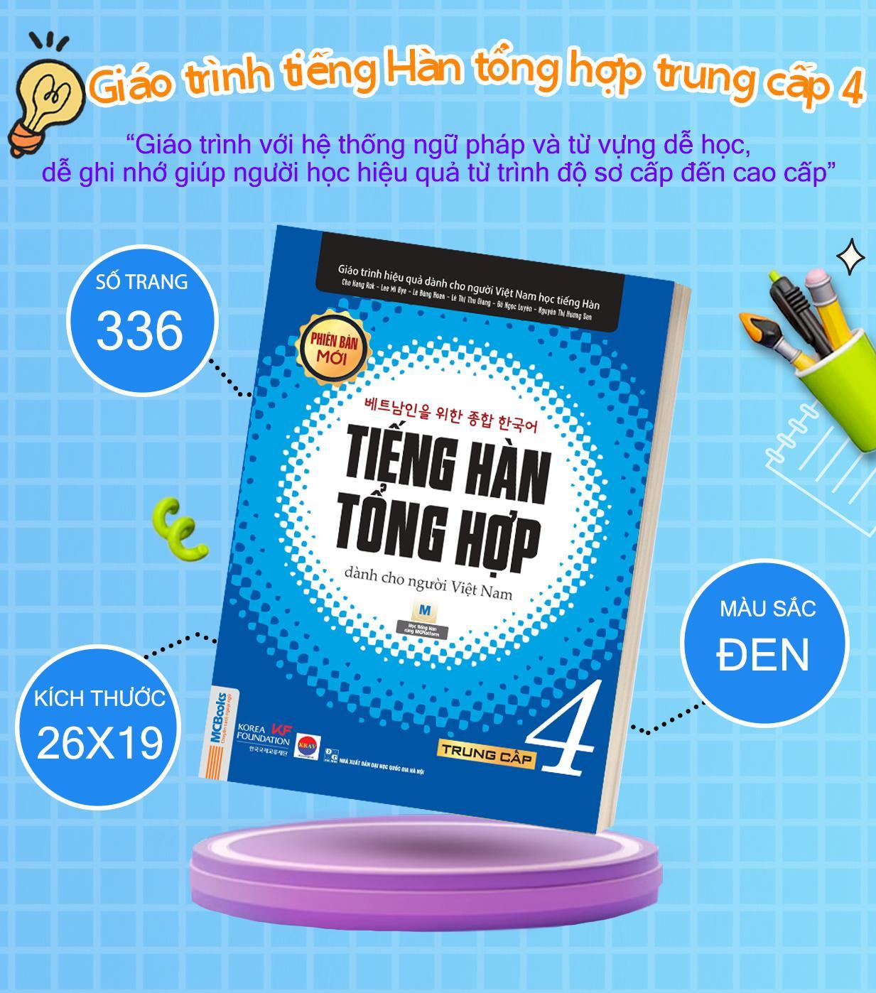 Sách - Giáo trình Tiếng Hàn Tổng hợp Trung cấp 4 - sách bài học Bản Đen trắng - McBooks