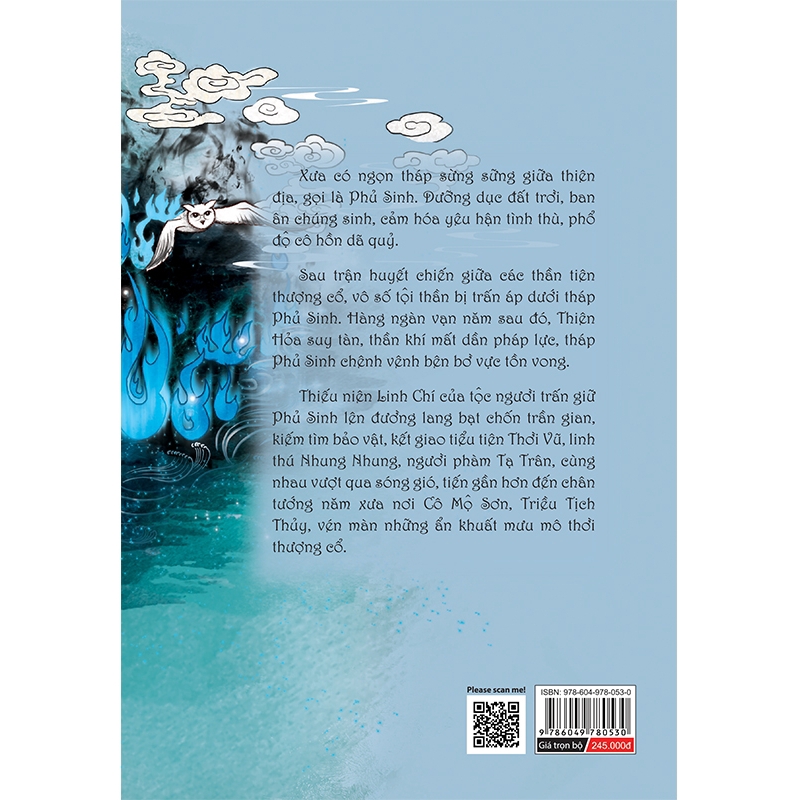 “Lúc trước ta cứ nghĩ thoát khỏi xác phàm thì có thể mặc áo lông ngũ sắc bay qua bay lại trên mây, tự do tự tại, không chút ưu phiền. Vậy mà các ngươi tại sao người nào người nấy cũng đều mặt mày đau khổ, việc cần làm thì vẫn phải làm, buồn bã cũng chẳng bớt đi chút nào.” Trước nay nhân gian vốn cứ tưởng rằng, tôn ti trật tự là những thứ các thánh thần cao quý chốn thượng giới đặt ra, phàm là sinh vật đều phải phân biệt âm dương nam nữ, phàm là thần linh thì đều thanh cao, không màng thất tình lục dục, phàm là con người thì đều xứng đáng được hưởng ân phước từ thần tiên trên trời. Thế nhưng, sự thật là: vẫn có những bộ tộc mà trước khi trưởng thành thì phi nam phi nữ, các thần linh cũng phải mang trong mình dục vọng ham muốn mới có thể trường tồn thiên thu vạn đại, và con người thật ra cũng chỉ là thứ phẩm do Nữ Oa vô hình trung tạo ra mà thôi. Chân tướng của rất nhiều sự việc sau hàng ngàn vạn năm lưu lạc trong truyền thuyết chốn nhân gian đã không còn diện mạo ban đầu. Ở giữa thiên địa có một tòa tháp sừng sững giữa thiên địa, gọi là Phủ Sinh. Dưỡng dục đất trời, ban ân chúng sinh, cảm hoá yêu hận tình thù, phổ độc cô hồn dã quỷ. Sau trận huyết chiến giữa các thần tiên thượng cổ, vô số tội thần bị trấn áp dưới tháp Phủ Sinh. Hàng ngàn vạn năm sau đó, Thiên Hoả suy tàn, thần khí mất dần pháp lực, tháp Phủ Sinh chênh vênh bên bờ vực tồn vong. Thiếu niên Linh Chí của tộc người trấn giữ Phủ Sinh lên đường lang bạt chốn trần gian, kiếm tìm bảo vật, kết giao tiểu tiên Thời Vũ, linh thú Nhung Nhung, người phàm Tạ Trân, cùng nhau vượt qua sóng gió, tiến gần hơn đến chân tướng năm xưa nơi Cô Mộ Sơn, Triều Tịch Thuỷ, vén màn những ẩn khuất mưu mô thời thượng cổ. Thiên Đế, Nữ Oa, Thần Nông, Chúc Long,... và hàng loạt những bộ tộc chân nhân chỉ còn trong truyền thuyết thì ra chẳng như những gì nhân gian đồn đại. Trước nay vốn chẳng có chính tà, thực hư gì hết, chỉ là những góc nhìn khác nhau của thứ gọi là sự thật, phần nổi của tảng băng chìm mà thôi. Suy cho cùng, chẳng có kẻ nào là được tiêu dao tự tại giữa chốn trời đất này. Vạn vật có linh hồn đều muốn tu thành chính quả. Cây cỏ muông thú ngưỡng mộ sự tự tại của người phàm, người phàm lại ngưỡng mộ sự trường sinh của tiên yêu, kể cả những kẻ luyện được thuật trường sinh thì trước mặt những vị thần cùng trường tồn với thiên địa cũng chẳng khác nào cát bụi. Nhưng rồi những vị thần ấy cũng đã đến hồi suy tàn, vì quyền lực, vì tư thù, vì chúng sinh mà cam lòng hoặc bất đắc dĩ lao vào một trận chiến vốn dĩ không có kẻ thắng cuộc. Thông tin tác giả: Tân Di Ổ là tác giả 8x đi đầu trong dòng văn học trẻ Trung Quốc với hàng loạt những tác phẩm tiêu biểu nhận được sự mến mộ của đông đảo độc giả, được chuyển thể thành công sang phim truyền hình, phim điện ảnh như: “Anh có thích nước Mỹ không?”, “Hoá ra anh vẫn ở đây”, “Ánh trăng không hiểu lòng tôi”…