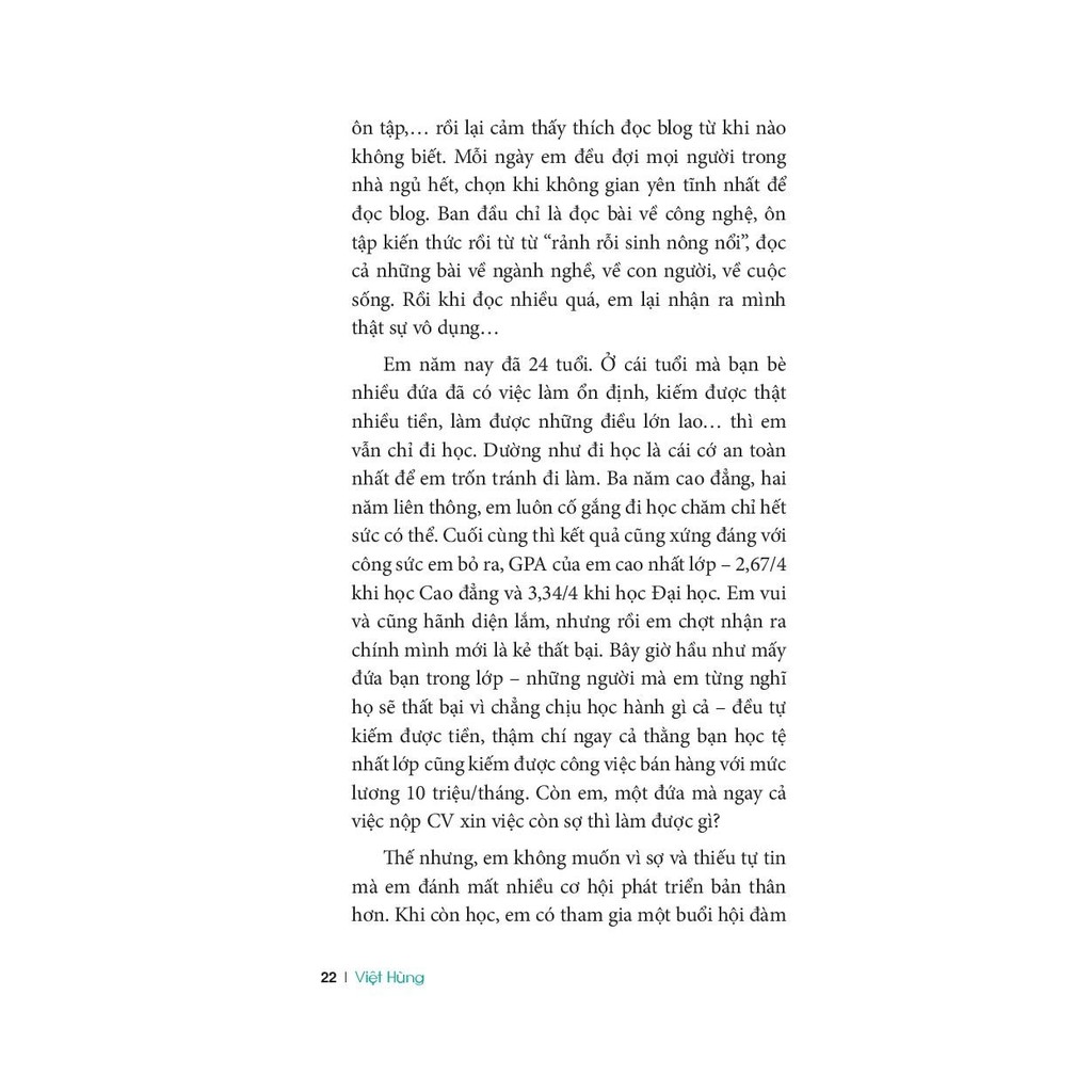 Cảm ơn tác giả Việt Hùng. Những tản mạn mà tác giả đã đúc kết không hề tản mạn. Nó khúc chiết, nhất quán mà gần gũi, dễ hiểu. Tâm tư và tấm lòng của tác giả đã lôi cuốn tôi hoàn toàn. Bằng lối chia sẻ chân tình, bằng những trải nghiệm quý báu trong nghề nghiệp và cuộc sống, những mẩu chuyện trong cuốn sách này khiến tôi thấy như đang viết cho mình, chia sẻ với riêng mình và nhắc nhở tôi hãy nhìn lại, hãy điều chỉnh để gặt hái nhiều hơn nữa những giây phút hạnh phúc. Tác giả cũng nhắc nhở tôi không làm vẩn đục mà – trái lại – hãy là cảm xúc, là chất xúc tác, là hương hoa trong hành trình tìm đến hạnh phúc đích thực của người thân, bạn bè, đồng nghiệp và cộng đồng.