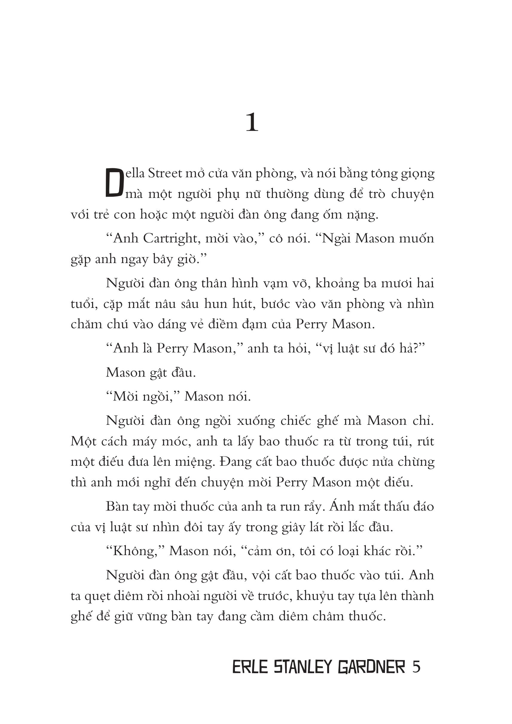 Cốt truyện hấp dẫn, nhiều khúc ngoặt bất ngờ, giọng văn mạch lạc và đanh thép khiến người đọc bị cuốn hút vào hành trình bào chữa – phá án của luật sư Perry Mason. Và phải tới những trang cuối cùng, bạn mới hoàn thành mảnh ghép để giải đáp cho những vấn đề xoáy sâu xuyên suốt câu truyện.