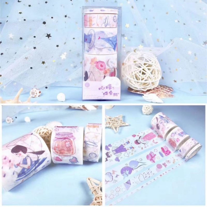 Văn Phòng Phẩm > Thiết Bị Trường Học > Dây & Băng Keo Dán || Set 4 cuộn băng dính washi tape