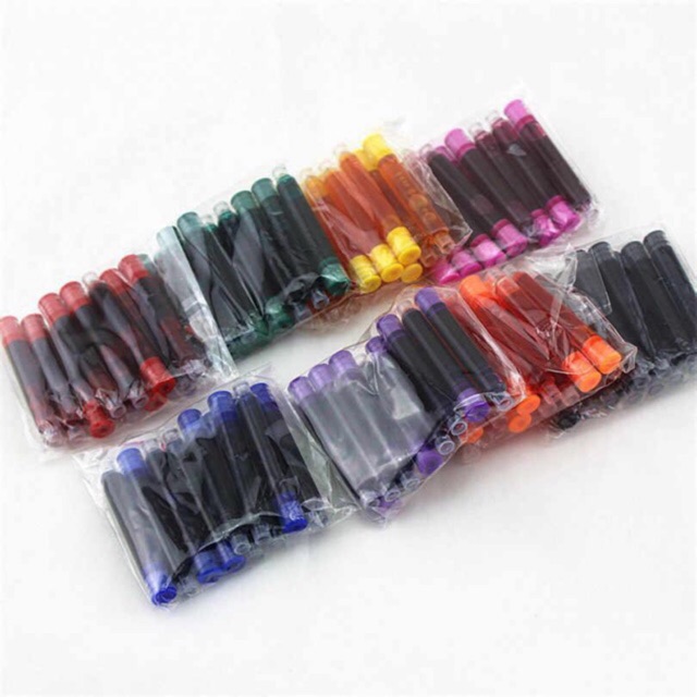 ✍️ Lưu ý: Ống mực không cắm vừa bút Nhật và 1 số loại bút dùng ống mực size khác. Mực trong ống là loại không tẩy xoá được. Shop đóng gói 1 set 5 ống trong túi zip. Quý khách mua số lượng lớn hoặc về tự đóng gói có thể nhắn shop để trả giá và sửa cân nặng tránh phí ship quá cao. Trân trọng cảm ơn!