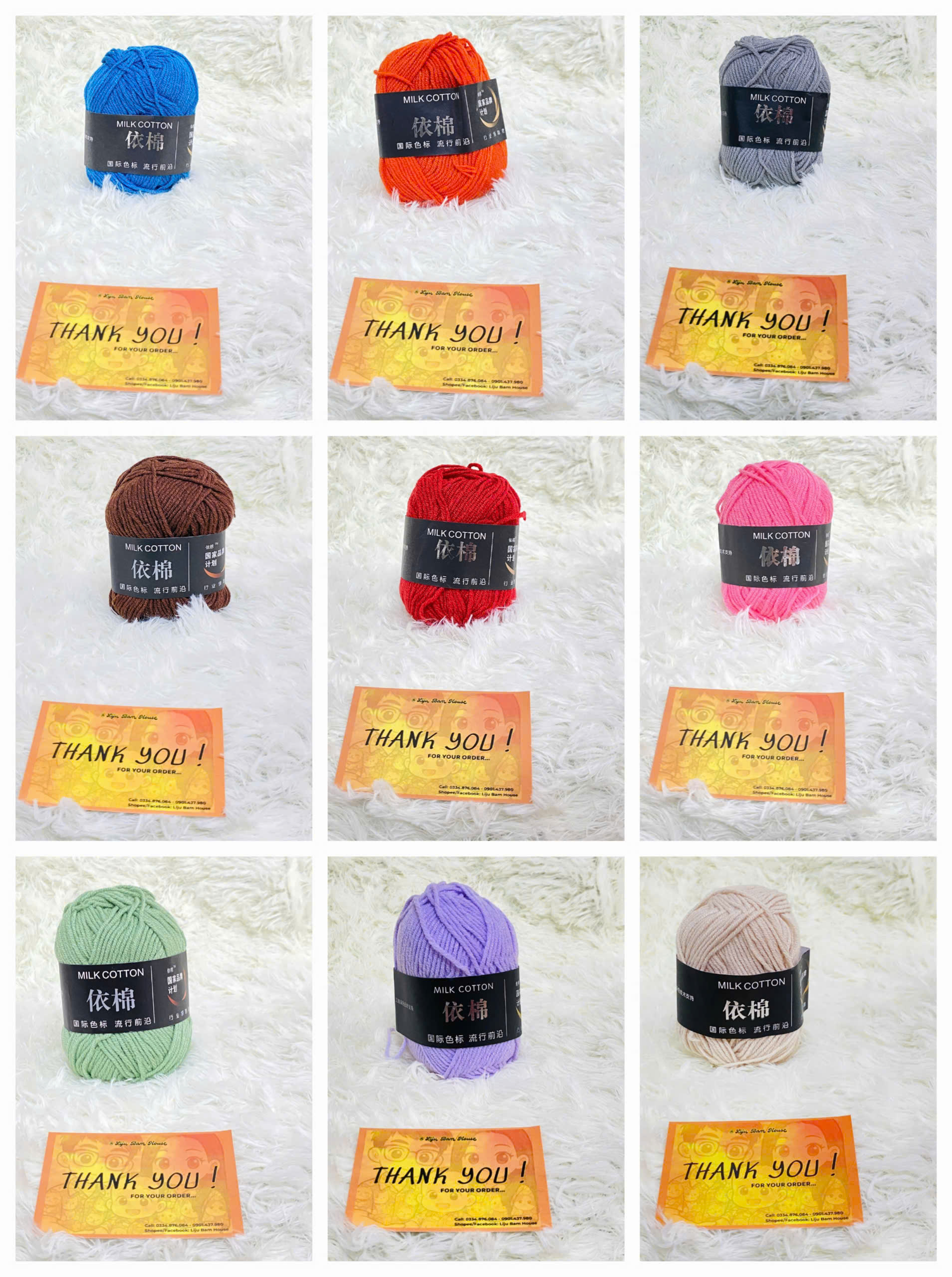 | Chất liệu | Là loại sợi được sản xuất từ cotton pha với sợi acrylic.Gọi là “milk cotton” vì sợi này mềm mịn, trơn bóng và có cảm giác “mượt như sữa”, chứ không phải vì có thành phần từ sữa.Thông thường tỉ lệ thành phần:60% Cotton (giúp thoáng mát, thấm hút tốt).40% Acrylic (giúp sợi bền màu, ít xù lông, nhẹ hơn, có độ đàn hồi |