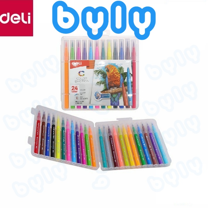 Giới thiệu [Ship hỏa tốc] Hộp bút lông màu nước rửa được đầu brush 12 màu 24 màu Deli C10304 - C10324 - ByLy Store