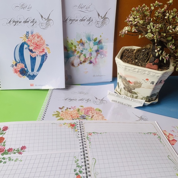 - Sổ nhật ký luyện chữ đẹp được đóng thành cuốn giúp lưu giữ lại những nét chữ đẹp qua từng thời kỳ và giai đoạn tập viết cũng như những bài luyện chữ của bạn.