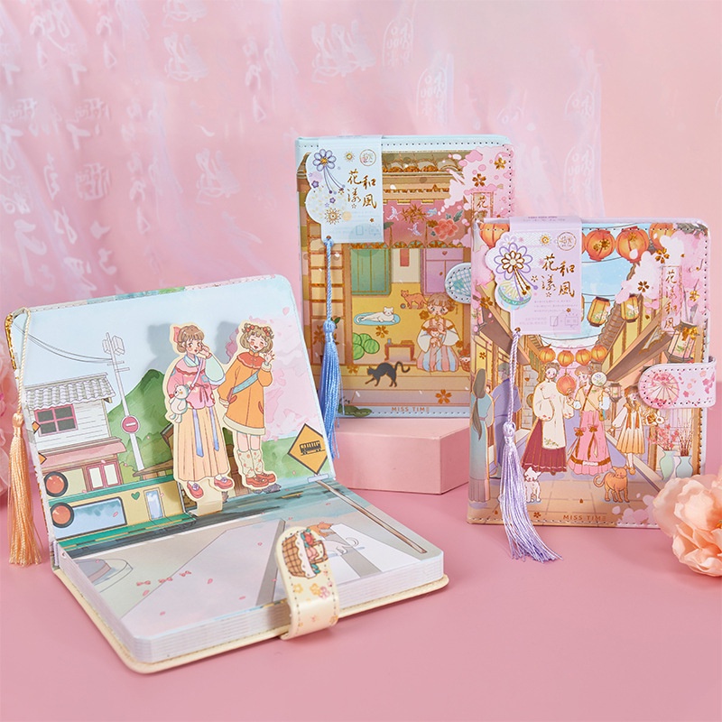 Văn Phòng Phẩm > Sổ & Giấy Các Loại > Tập, Vở Các Loại || Sổ tay bìa da Pu cổ phong Hán phục có tua rua