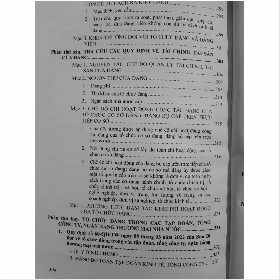Phần thứ sáu. TRA CỨU CÁC QUY ĐỊNH VỀ TÀI CHÍNH, TÀI SẢN CỦA ĐẢNG