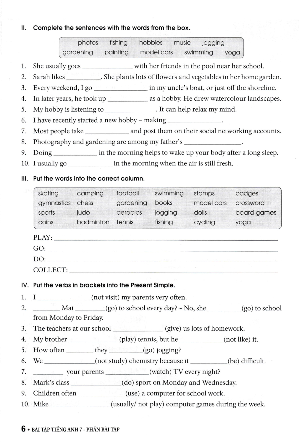 Nhằm giúp các em học sinh có thêm tài liệu để ôn luyện và thực hành môn tiếng Anh 7 theo chương trình mới của Bộ Giáo dục và Đào tạo, chúng tôi biên soạn sách Bài Tập Tiếng Anh 7.